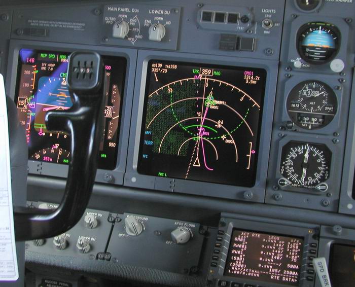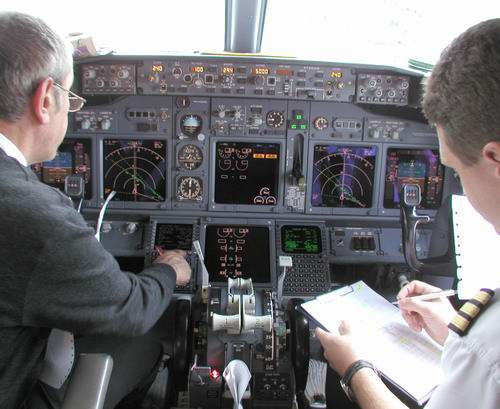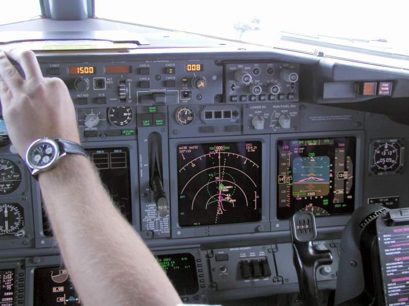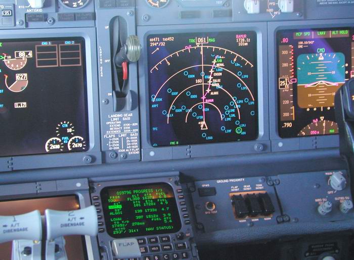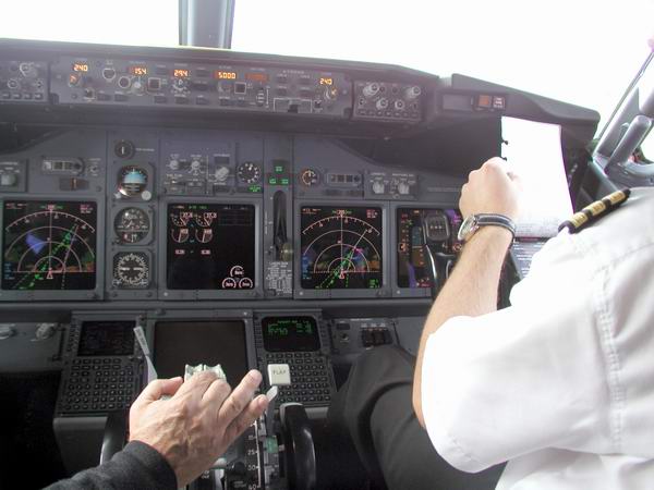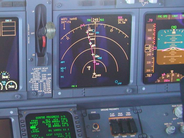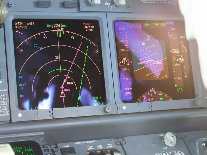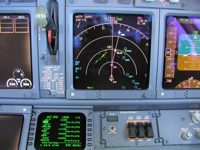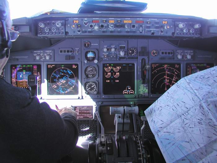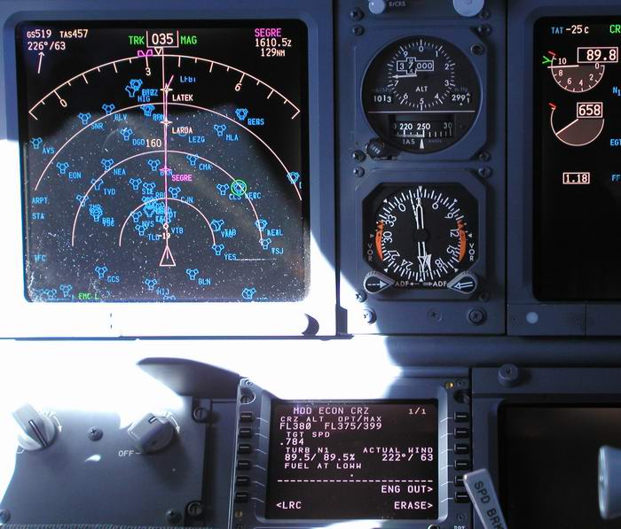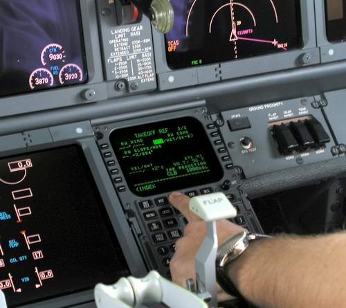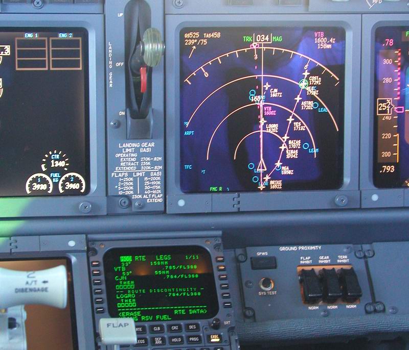 Der Kapitän checkt die Flugroute im FMC |