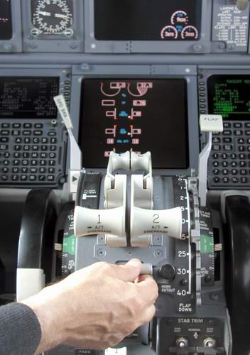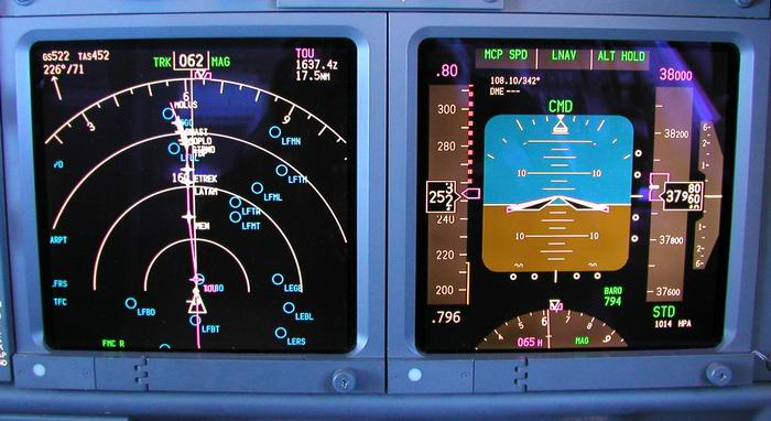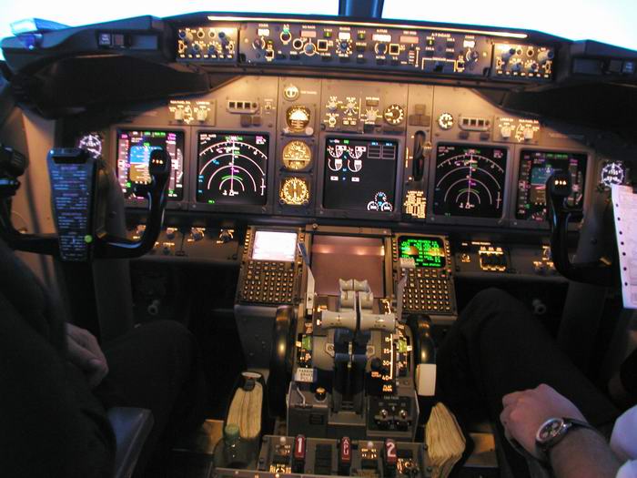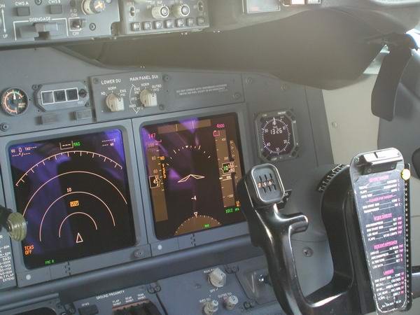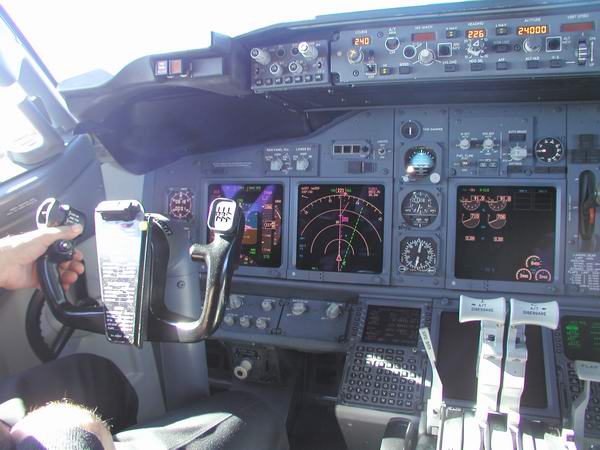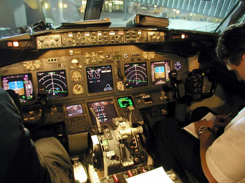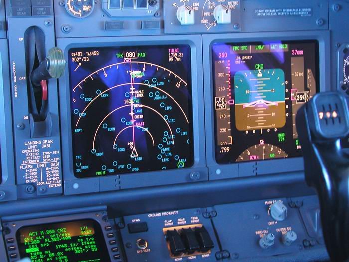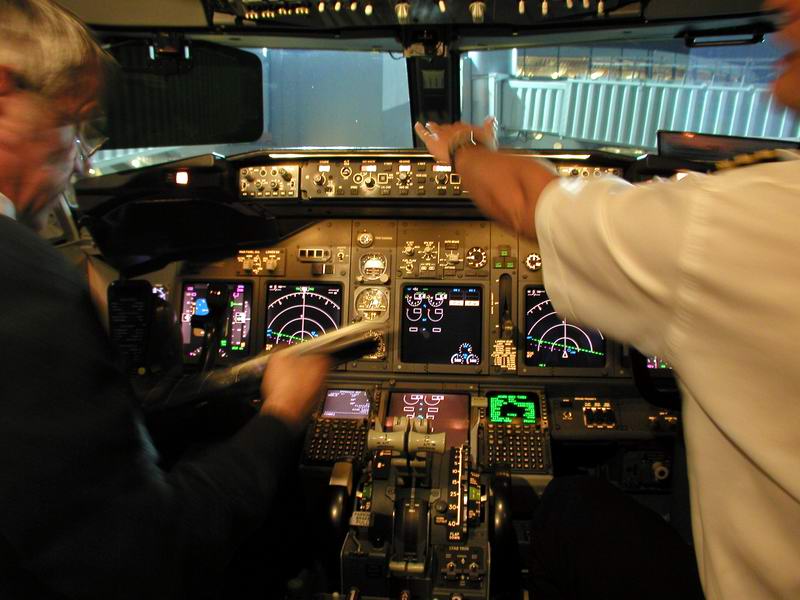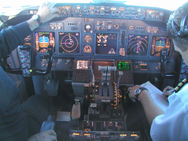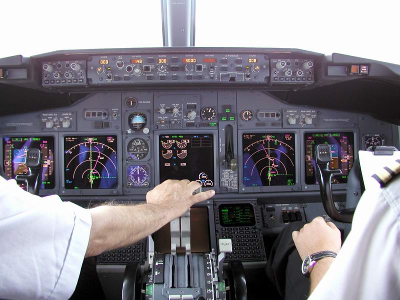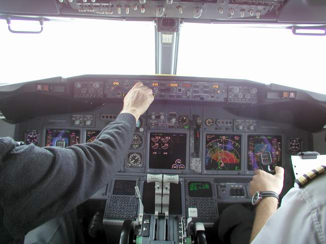 Der Kapitän checkt die Flugroute im FMC |