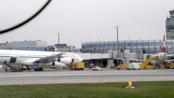 Gate A - A321-111 (OE-LBA) und A340 (OE-LAH) am Gate |