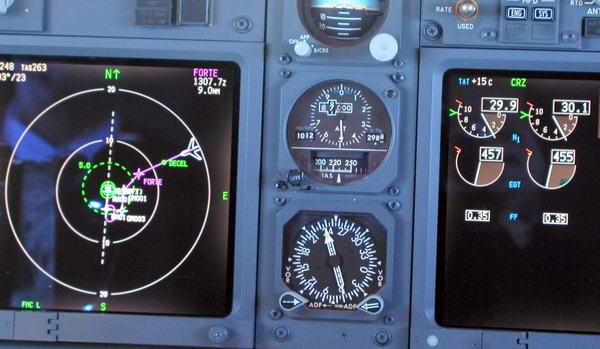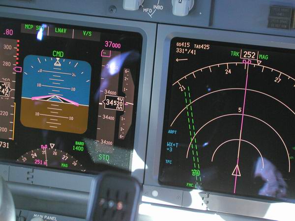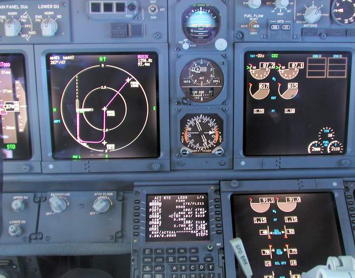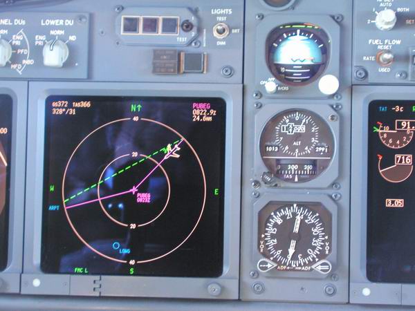 Der FMC übernimmt den weiteren Flug starke Bewölkung voraus |