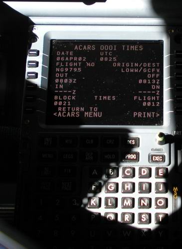 Der 1stOfficer gibt den Flugplan in den FMC |