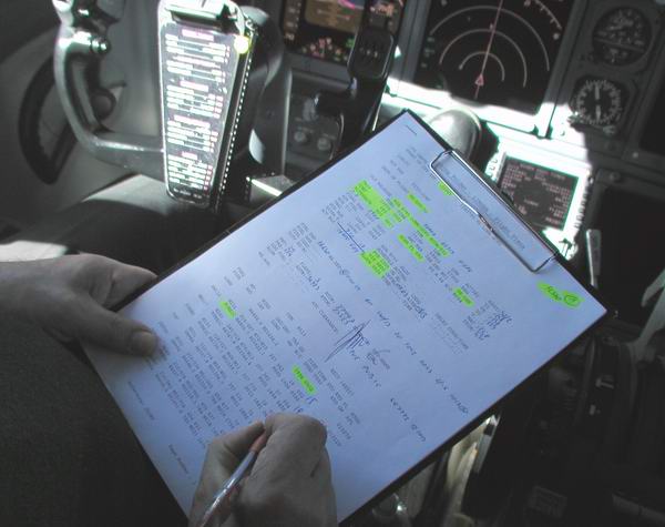 Cpt. trägt die vorausberechneten Zeiten ein |