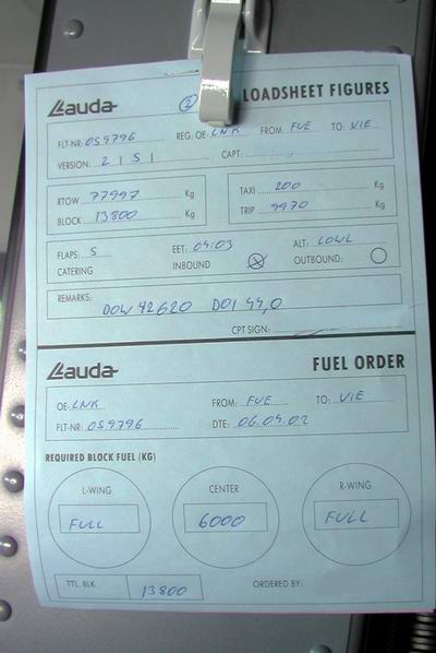 FMC Wert der Trimmung wird eingetragen Abfluggewicht Check etc. |