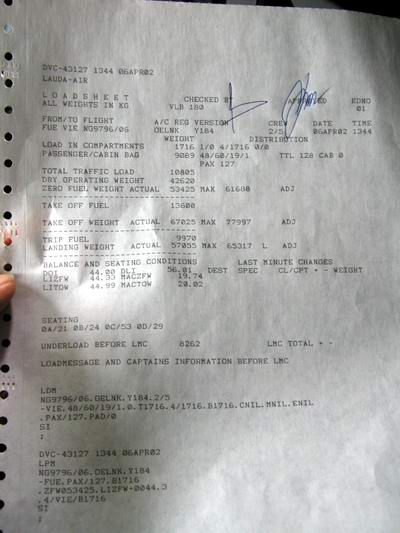 Ladeliste für Rückflug |