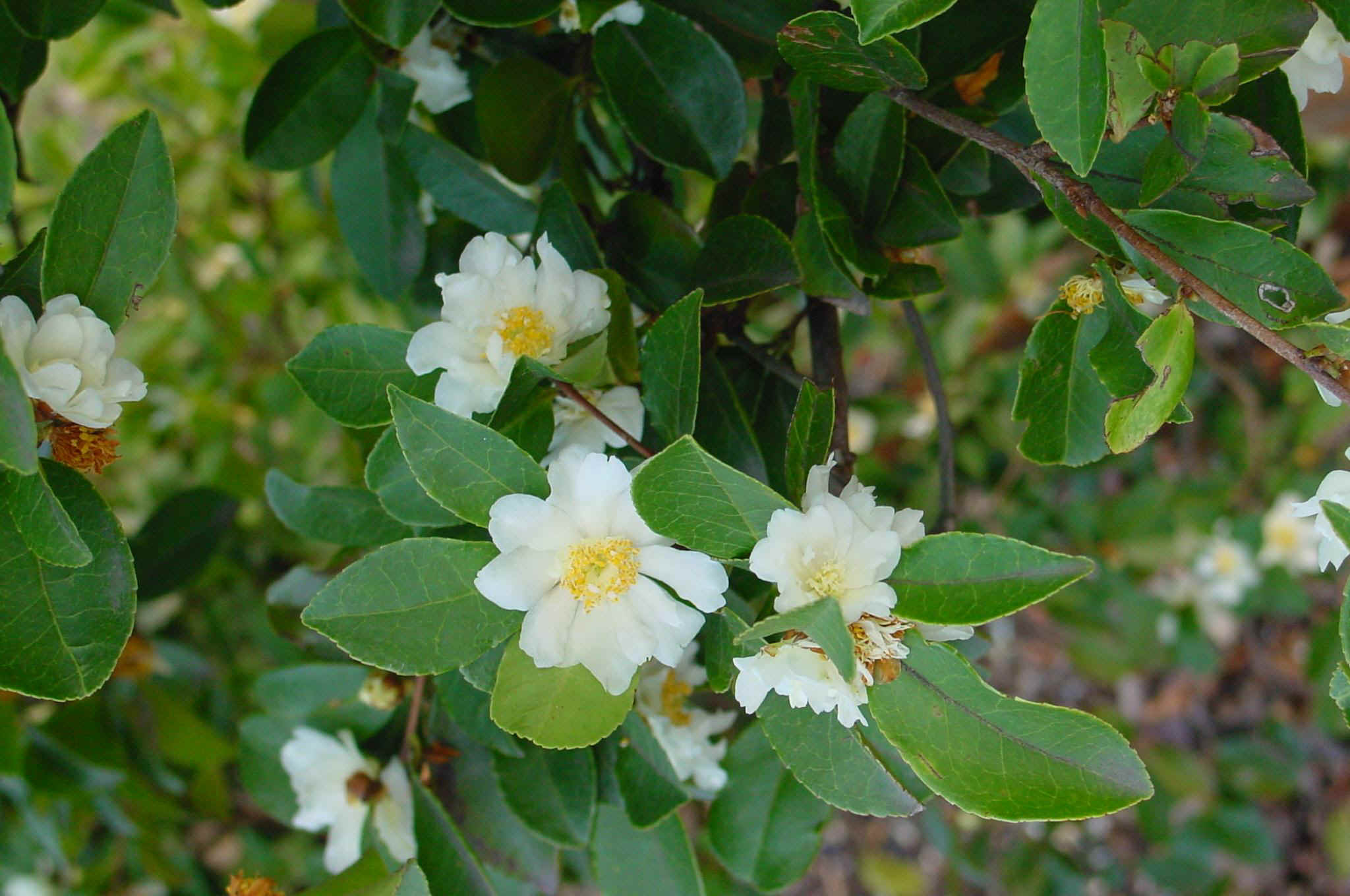 die besonders ölhaltige Form der Teepflanze Camellia oleifera, Küchenschellen am Weinberg im Stratzingbachtal.